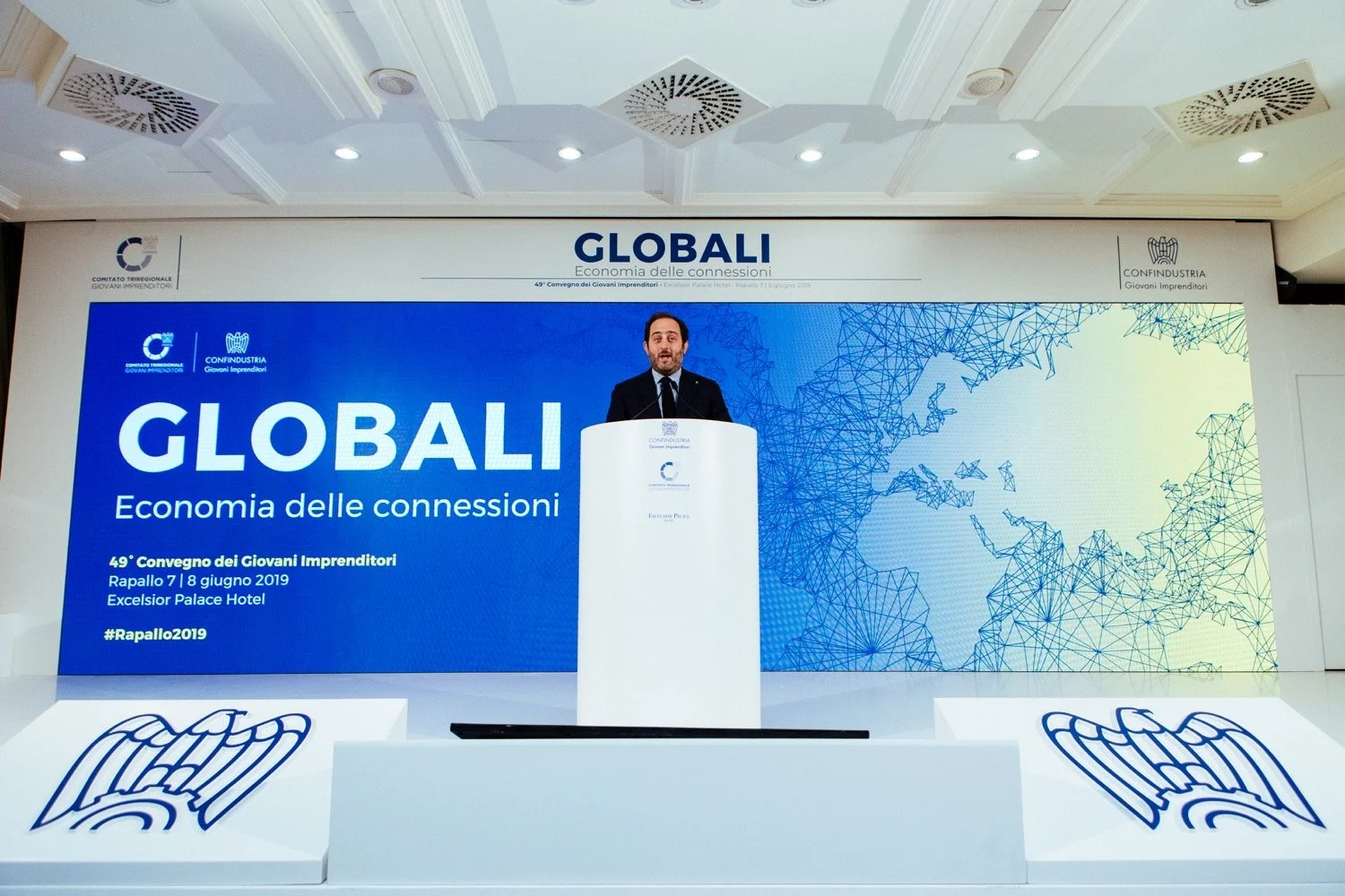 Per il 49° Convegno i Giovani di Confindustria hanno scelto Il Grand Hotel Excelsior di Rapallo. Gli interventi hanno visto tra gli altri il Sottosegretario di Stato alla Presidenza del Consiglio dei ministri Giancarlo Giorgetti e i presidenti di Regione Lombardia Attilio Fontana e di Regione Campania Vincenzo De Luca, a moderare David Parenzo.